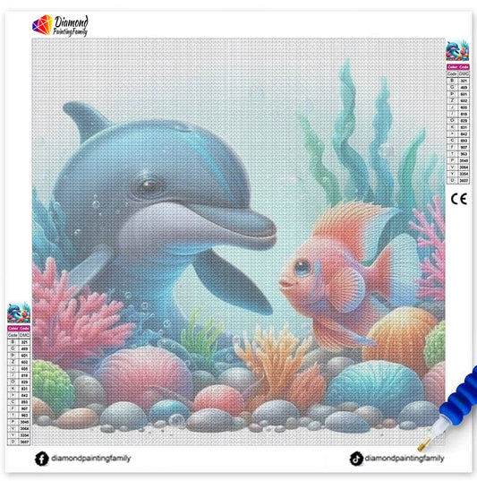 Diamond Painting Family Resin Square Fairy Dust Crystal AB Stone Diamond Painting Arts Colorful Dolphin丨DF0194