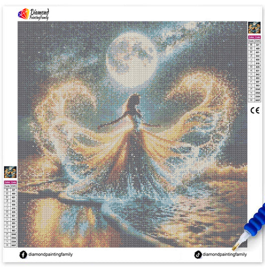 Diamond Painting Family Full Resin Square Fairy Dust Crystal AB Stone Diamond Painting Arts Moon Beach丨DF0065