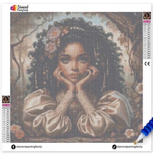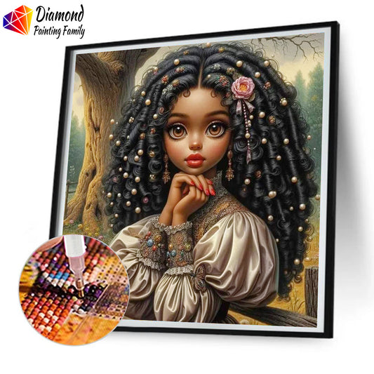 Diamond Painting Family Full Resin Square Fairy Dust Crystal AB Stone Diamond Painting Arts Black Girl丨DF0007
