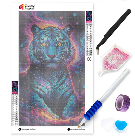 Diamond Painting Family Full Resin Square Fairy Dust Crystal AB Stone Diamond Painting Arts Blue Tiger丨DF0039