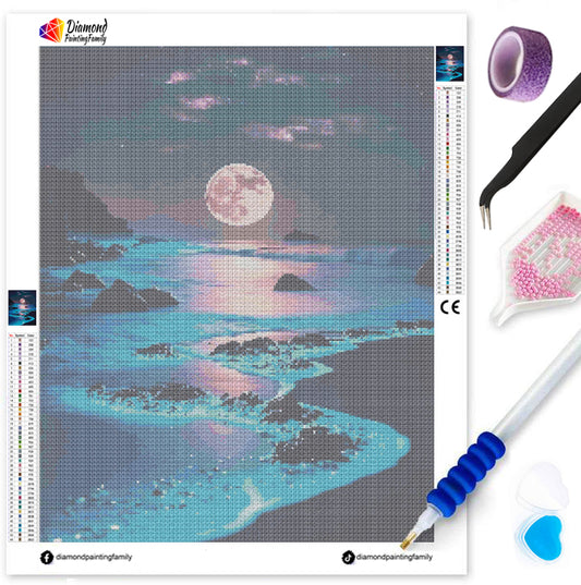 Diamond Painting Family Full Resin Square Fairy Dust Crystal AB Stone Diamond Painting Arts Beach Moon丨DF0080