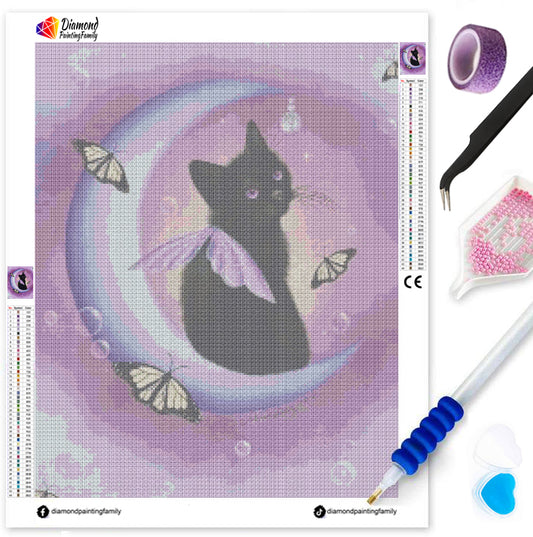 Diamond Painting Family Full Resin Square Fairy Dust Crystal AB Stone Diamond Painting Arts Black Cat Moon丨DF0084