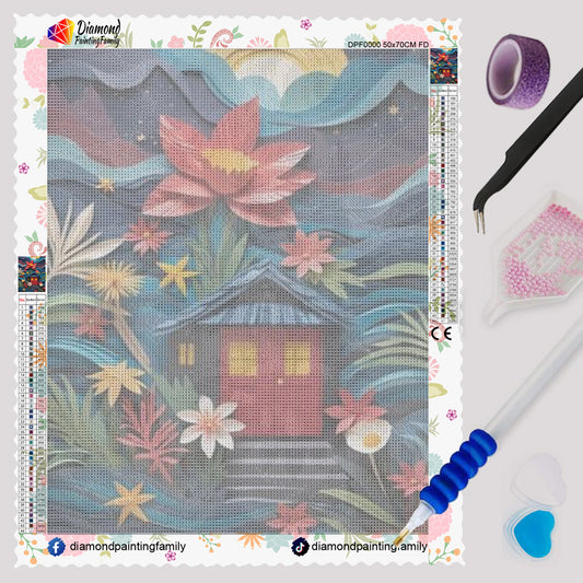 Diamond Painting Family Resin Square Fairy Dust Crystal AB Stone Diamond Painting Arts Flower House丨DF0182