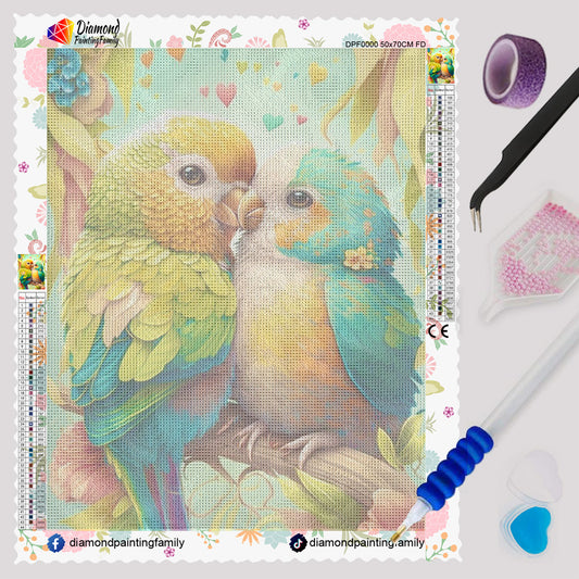 Diamond Painting Family Resin Square Fairy Dust Crystal AB Stone Diamond Painting Arts Parrot Love丨DF0185