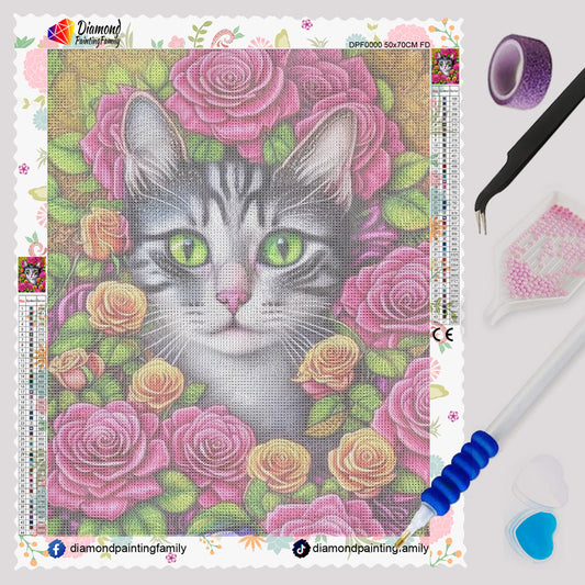 Diamond Painting Family Resin Square Fairy Dust Crystal AB Stone Diamond Painting Arts Flower Cat丨DF0188