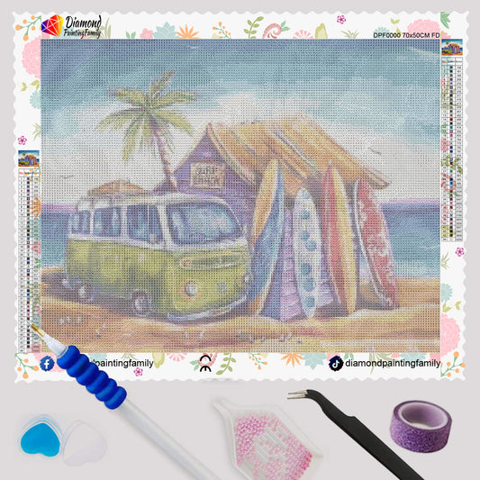 Diamond Painting Family Full Resin Square Fairy Dust Crystal AB Stone Diamond Painting Arts Surf Shack丨DF0104