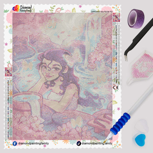 Diamond Painting Family Full Resin Square Fairy Dust Crystal AB Stone Diamond Painting Arts Spring Girl丨DF0121