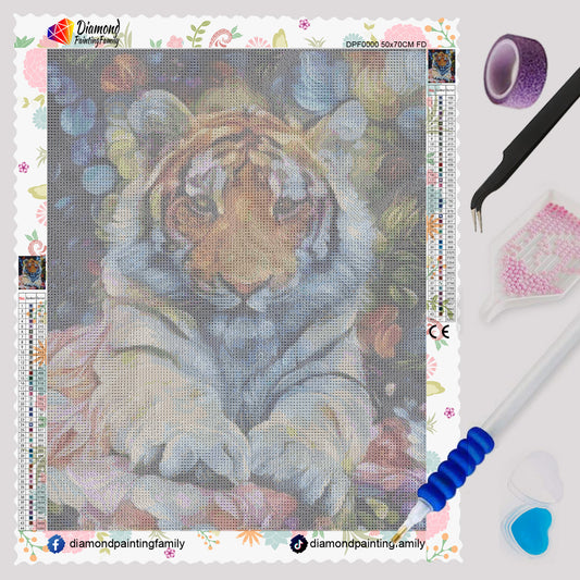 Diamond Painting Family Full Resin Square Fairy Dust Crystal AB Stone Diamond Painting Arts Petal Tiger丨DF0122