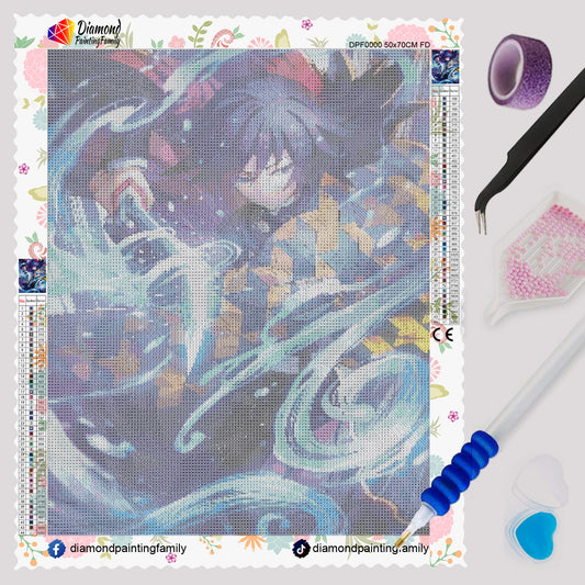 Diamond Painting Family Full Resin Square Fairy Dust Crystal AB Stone Diamond Painting Arts Kimetsu no Yaiba丨DPF0125