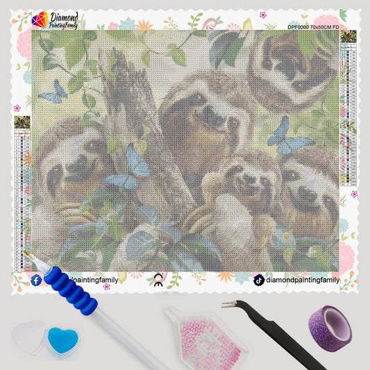 Diamond Painting Family Full Resin Square Fairy Dust Crystal AB Stone Diamond Painting Arts Sloth Family丨DF0136