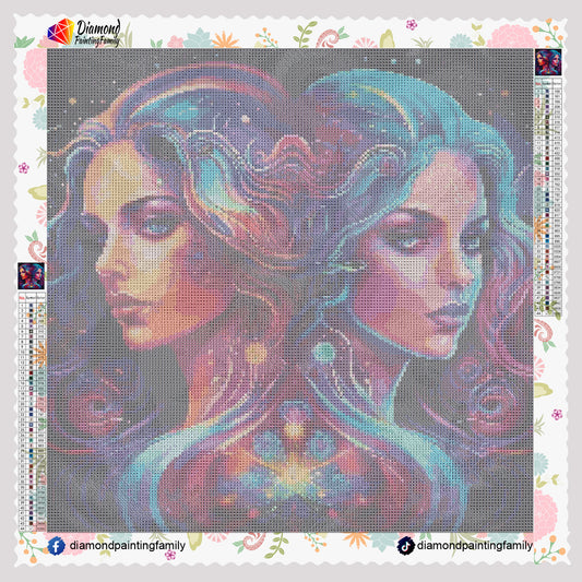 Diamond Painting Family Full Resin Square Fairy Dust Crystal AB Stone Diamond Painting Arts Twin Princesses丨DF0100