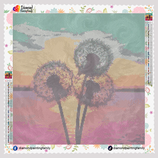 Diamond Painting Family Full Resin Square Fairy Dust Crystal AB Stone Diamond Painting Arts Sunset Dandelion丨DF0101