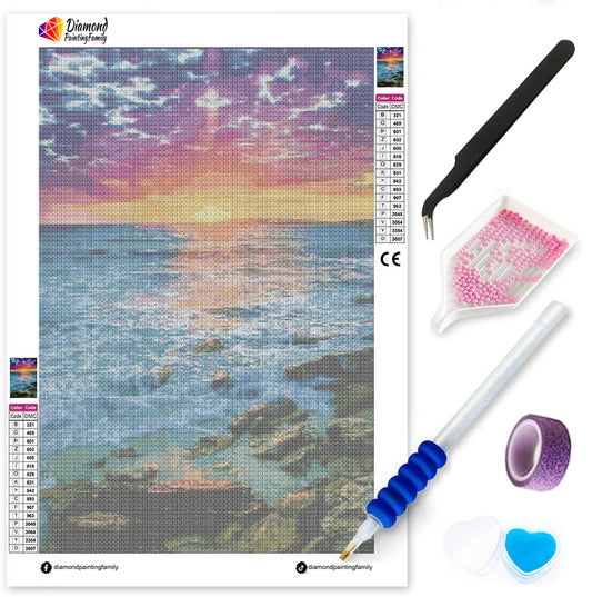 Diamond Painting Family Full Resin Square Fairy Dust Crystal AB Stone Diamond Painting Arts Ocean Sunrise丨DF0083