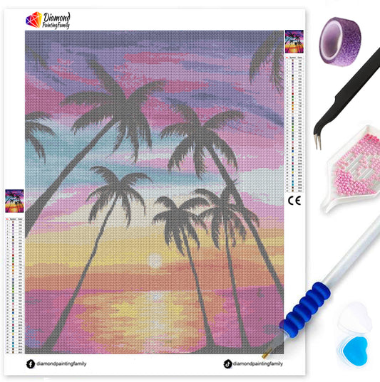 Diamond Painting Family Full Resin Square Fairy Dust Crystal AB Stone Diamond Painting Arts Sunset Coconut Tree丨DF0088