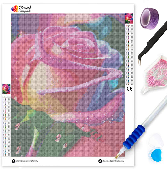 Diamond Painting Family Full Resin Square Fairy Dust Crystal AB Stone Diamond Painting Arts Pink Rose丨DF0089